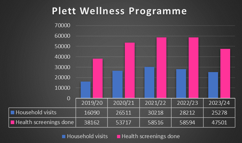 The Plett Wellness team, driven by two sisters with our 29 community health workers and 2 lay counsellors, did over 25,000 visits to households throughout the various communities in Bitou, performing 47,501 health and wellness screenings and referring 1771 community members for further support at appropriate health care facilities. Furthermore, 13021 clients were supported with adherence counselling to improve the correct and continuous use of chronic medication for HIV, hypertension, diabetes, TB, asthma and epilepsy. The aim of this programme is to improve the overall health of our community by improving their health literacy, early identification of illnesses and referral to appropriate health care services to ensure treatment.